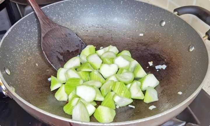 1. Prep the Luffa: Wash the luffa thoroughly, peel off the skin, and cut it into large chunks or thick slices. Bigger pieces hold up better during cooking.