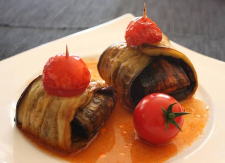 Islim kebabs resemble little packages wrapped in aubergine (eggplant) slices. The aubergine slices are wrapped around chunks of lamb or beef, or kofte, prepared with ground meat, along with a robust tomato sauce. It is assembled and baked. Before serving top with a slice of tomato and green pepper. A toothpick is inserted through every package.