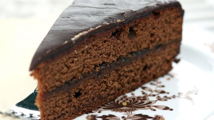 Sacher Torte is a popular Austrian cake. It consists of layered chocolate sponge cake thinly coated with apricot jam and topped with chocolate icing.