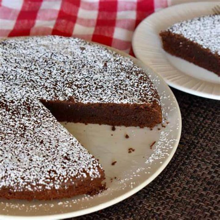 Torta Caprese is a dark chocolate cake prepared without any flour. It combines dark chocolate, eggs, sugar, almonds, and butter.