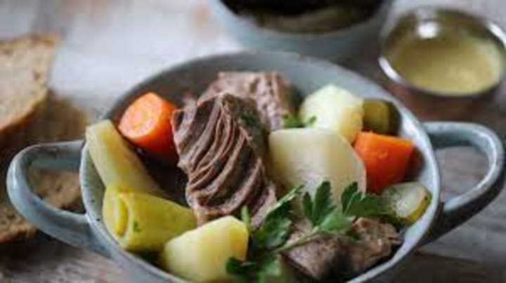 Pot-au-feu is a classic French stew with boiled meat and vegetables, Its name translates to "pot on fire" and it is one of the oldest French winter dishes.