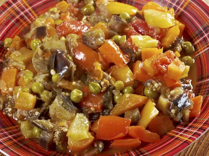 In the wintertime, the stew includes root vegetables like carrots, celery, cauliflower, and cabbage. In the summertime, the stew is prepared with zucchini, eggplant, or bell peppers. Standard ingredients are tomatoes or tomato sauce, garlic, and onions.