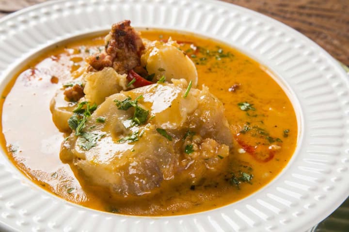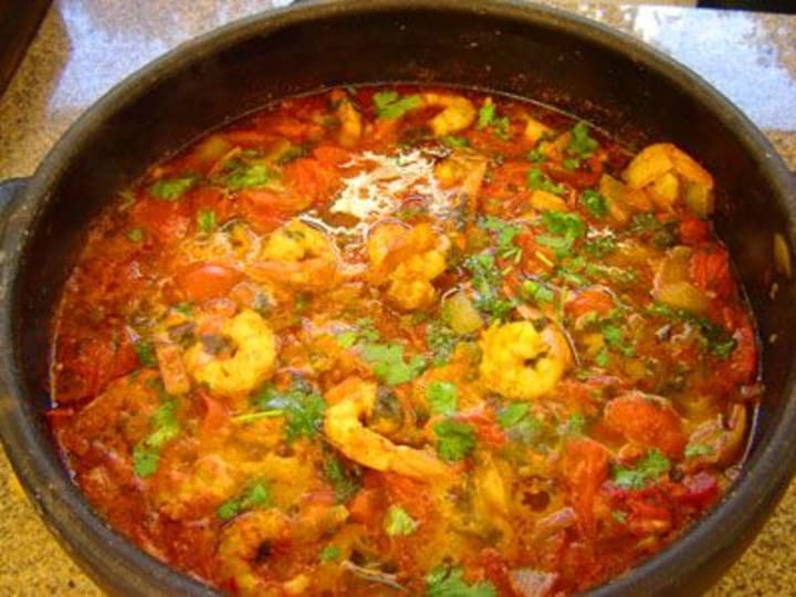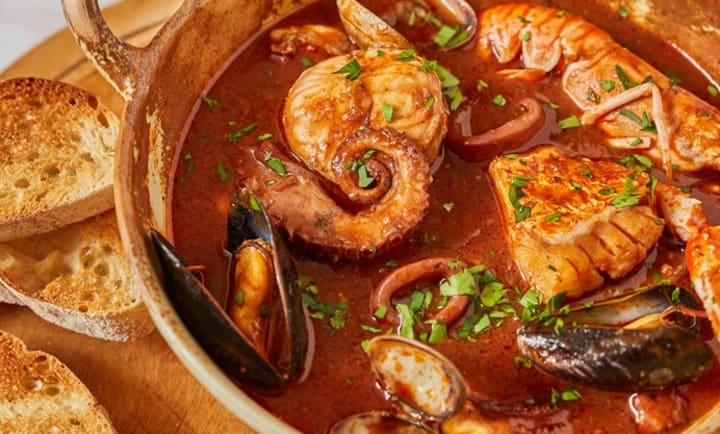 Caldeirada is a traditional Portuguese seafood stew. The stew can be prepared with various kinds of fish, shellfish, or squid and octopus.