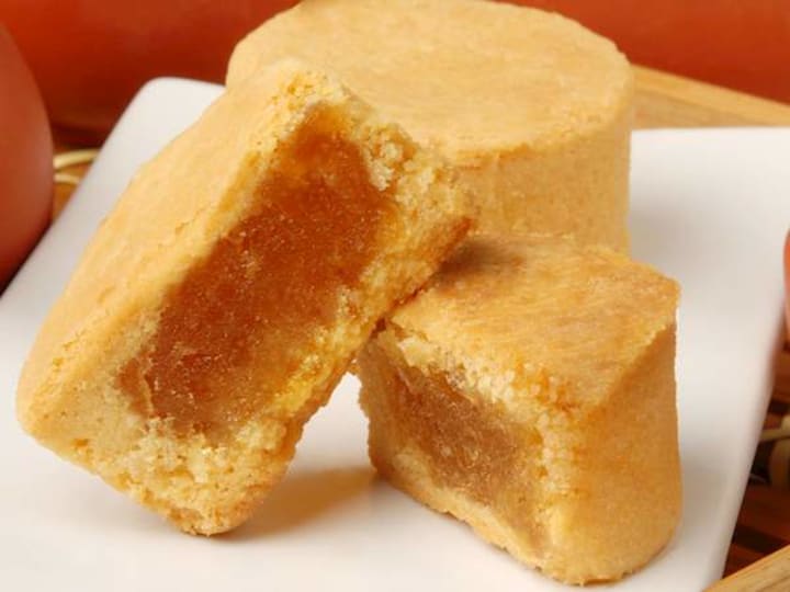 Fènglísū are pineapple cakes, one of the country's most popular desserts and souvenirs. The cakes have a buttery, crumbly crust filled with a tangy, slightly sweet pineapple jam. The name of the dish is derived from fèng lí, meaning pineapple, and sū, meaning shortcake.