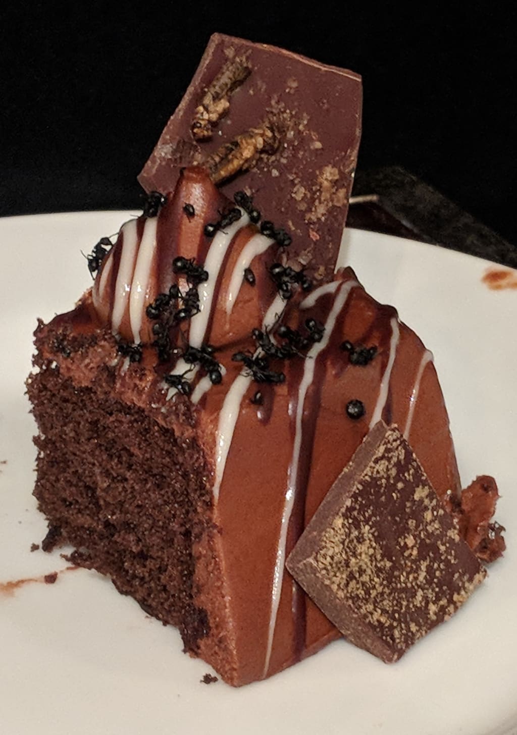 Everything went smoothly in making the cakes. At the end of the night, she walked around as people ate the cakes. She liked to hear what people thought. She also passed out a little information insert at the top of the cake boxes to help educate people. She listened to the chatter as people ate. Many had never heard of the idea of eating insects before. Of course some people were totally grossed out. But they too eventually tried it and were won over with the rich chocolate flavor. When people were leaving many took her educational insert, which also had the added bonus of how to find The Delicious Sustainable Dish to order more foods. Most boxes barely had crumbs leftover or people just took the whole box to go to “not waste a bite” as she heard one person say.