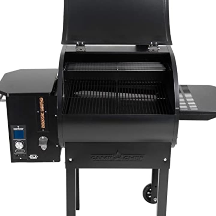 The Camp Chef SmokePro DLX Pellet Grill is a top-of-the-line smoker that is perfect for any serious griller. It features a digital control board that allows you to easily adjust the temperature and smoke levels with the push of a button. It also has a built-in grease management system and a patented Ash Cleanout system, which makes cleaning up after smoking a breeze. The SmokePro DLX also comes with a porcelain-coated grill grate, a removable upper warming rack, and a built-in meat probe thermometer.