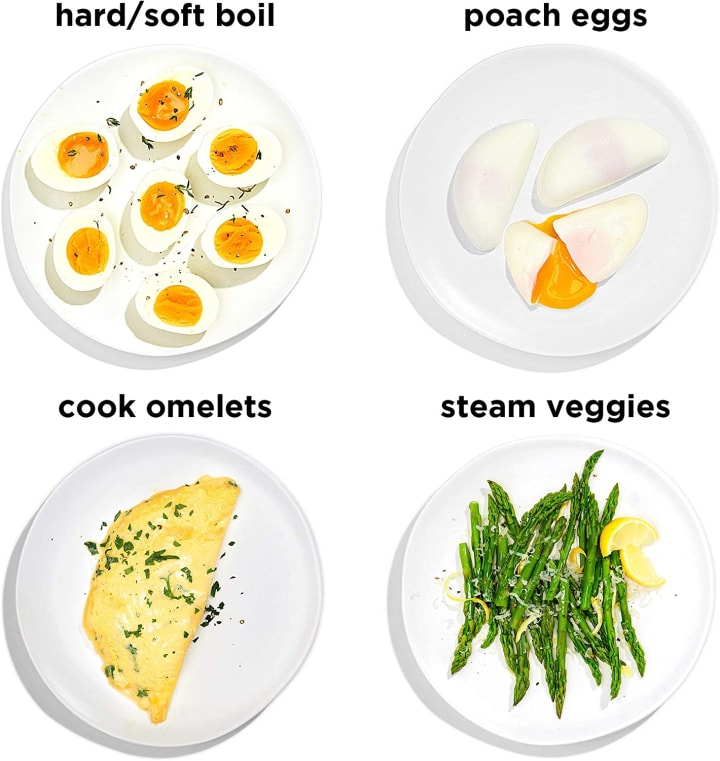 This cooker is not just limited to boiling eggs. You can also use it to make omelets, poached eggs, or even steamed vegetables.