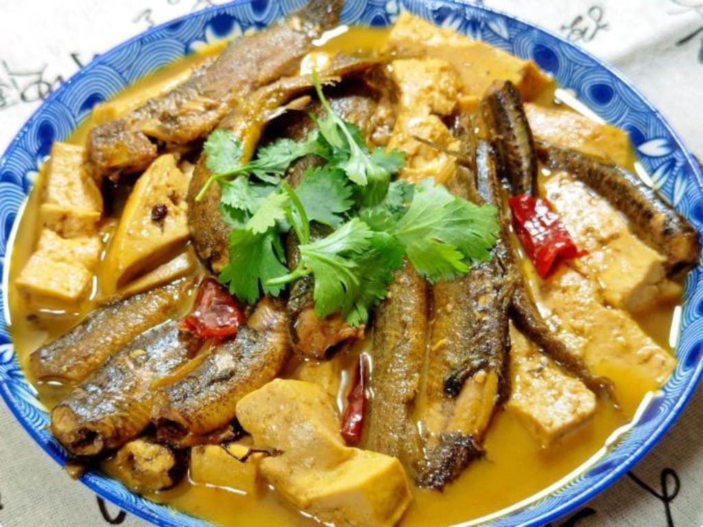 Add hot water to cover the fish, bring to a boil, then add the fried tofu. Simmer over medium-low heat for 20 minutes.