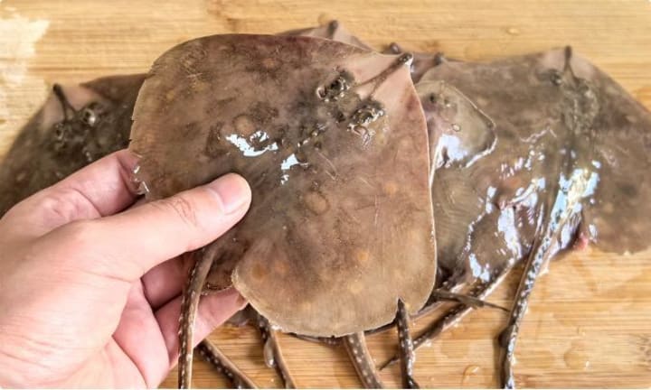 Skate has a unique appearance—shaped like a large fan, it contains no hard bones, only soft cartilage that offers a satisfying crunch when eaten. Its meat is exceptionally tender and smooth, with a distinct texture.