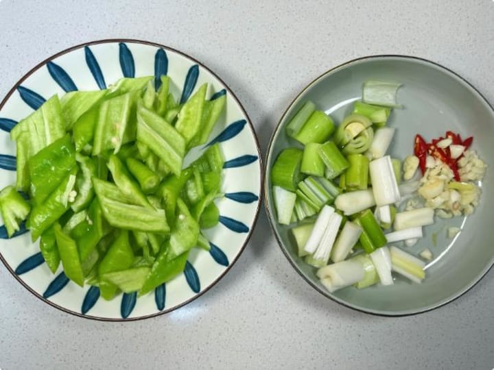 The secret lies in "one green, one white"—thin-skinned green peppers and crisp Shandong green onions (those with 2/3 white stalk). Avoid waxy thick-walled bell peppers; they’re about as flavorful as cardboard. For the onions, peel off outer layers and slice diagonally into "horse ear" shapes—the larger the cut surface, the sweeter the release.