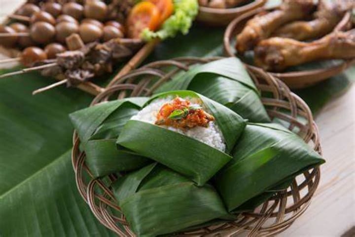 Nasi kucing is a traditional Indonesia dish that originated in Surakarta, Yogykarts, and Semarang in Central Java. The dish includes rice topped with tempeh, dried fish, and sambal and can also have chicken, eggs, and cucumber. The ingredients are wrapped in banana leaves.