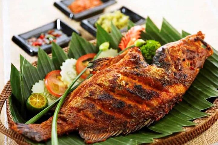 Ikan bakar is a popular dish in both Indonesia and Malaysia. The dish is made with barbecued fish. Usually the seafood includes squids, cockles, and clams. Before grilling the fish is marinated in chili paste, soy sauce, turmeric, galangal, and other spices.
