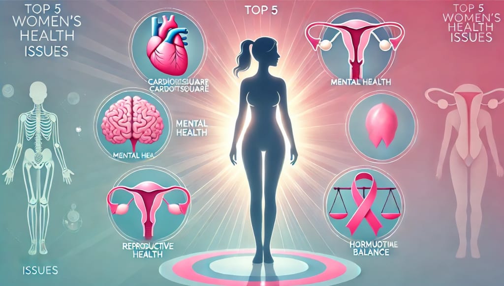 Woman's health includes a full spectrum of physical, mental and reproductive concerns that need to be earnestly addressed. Although improvements in healthcare have made it easier to know about and treat various conditions, women still face unique problems because of various biological, social, and cultural factors. There is a need to tackle the challenges in order to improve the overall lifestyle and well-being of women. This article looks at the five major health issues that hit women and underscores the need for preventive measures.