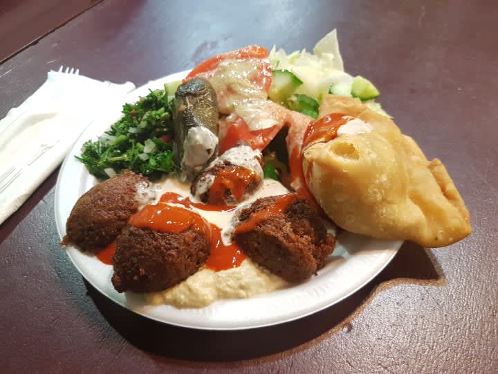 If you like spicy fried cuisines, then this is Authentic proper food. Shawarma and Falafel (a deep-fried ball or patty made from ground chickpeas, fava beans, or both) are popular dishes of the restaurant. Portions are huge, prices are affordable. This is the right place to eat out alone or with your friends.