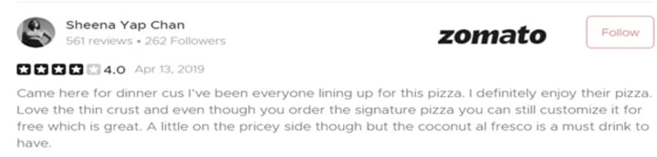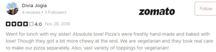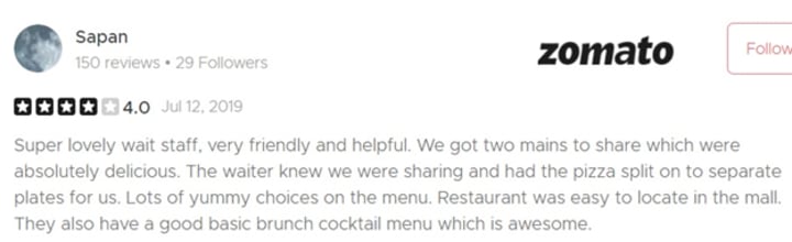 Zomato Rating: 3.6