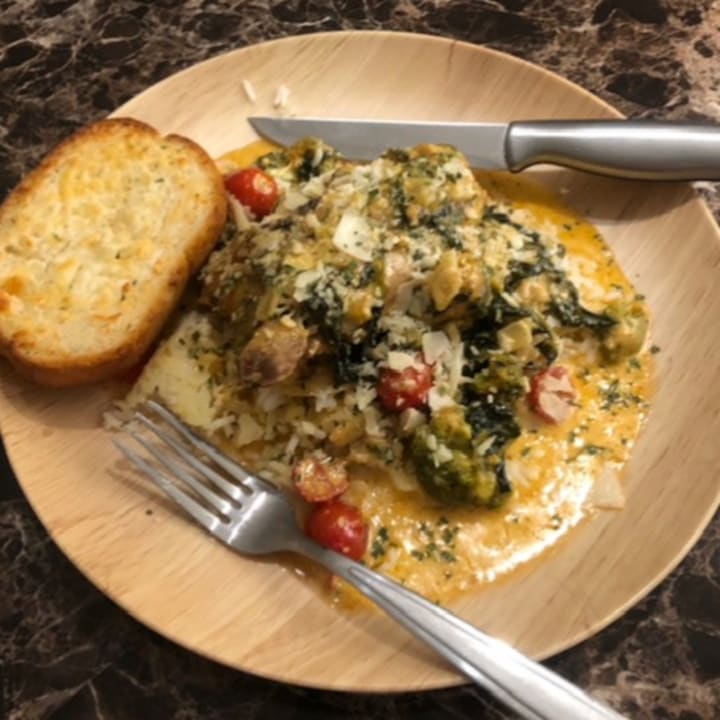 Secondly, let's try it with a Tuscan chicken breast with herbs, tomatoes, and broccoli over white rice and Texas toast garlic bread on the side. In this pairing, the berry notes dance with the multiple flavors and textures of the different components of this meal. The garlic is also distinctly amplified, but is still easily consumed for a signature finish that will have you eager for seconds (maybe even thirds).