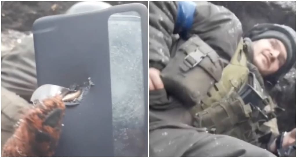 1. Saved by smartphone, people are always complaining that we're too hooked on our smartphones for our own good, but there's one Ukrainian soldier who would heavily disagree. While engaged in the frontlines of combat, the soldier's squad came under heavy enemy fire, and one of the bullets found its target. Fearing the worst, the soldier hit the deck and investigated his injury. But, instead of a deadly wound, he found this(image). The bullet had shot straight into his phone instead. Unbelievably, the phone with help of a metal dog tag, absorbed the full impact from the 7.62mm bullet and blocked it completely.