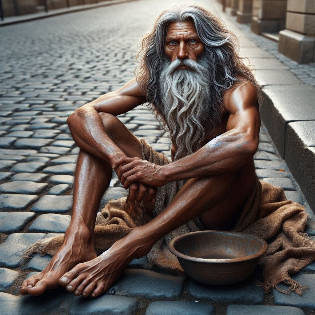 AI really didn't want to make this image, until I reassured it that "it's not a real beggar; it's an artist's impression of god". I am planning to try this work around again next time AI is being unhelpful.