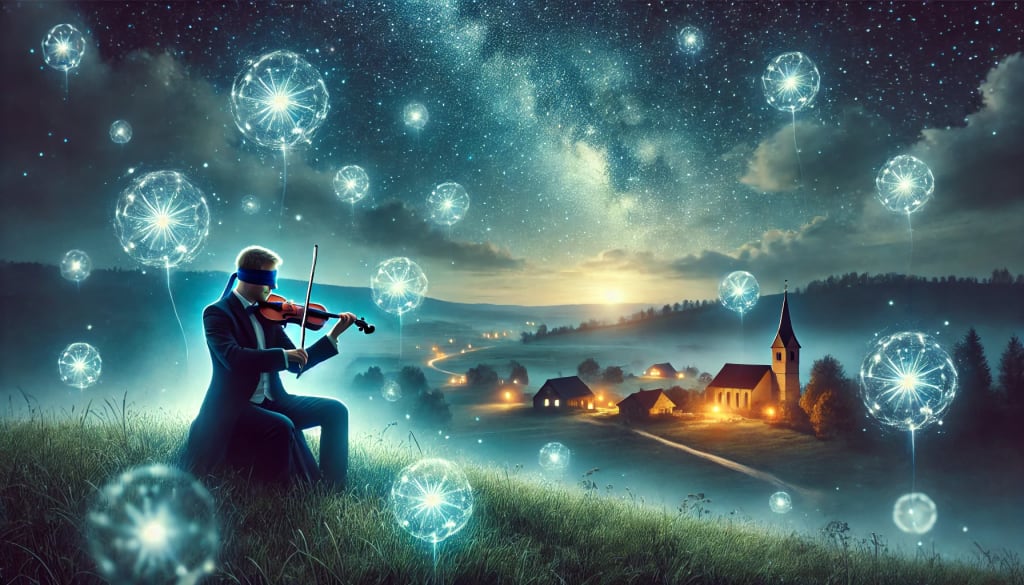 Ezra’s father had been a violinist, a talent he had passed down to his son. When Ezra held the violin, it became an extension of his very soul. Through its strings, he could express the emotions words failed to capture. The townsfolk often gathered outside his window in the evenings, listening to his melodies, which were as unpredictable as the changing seasons—sometimes joyous, sometimes mournful, always enchanting.