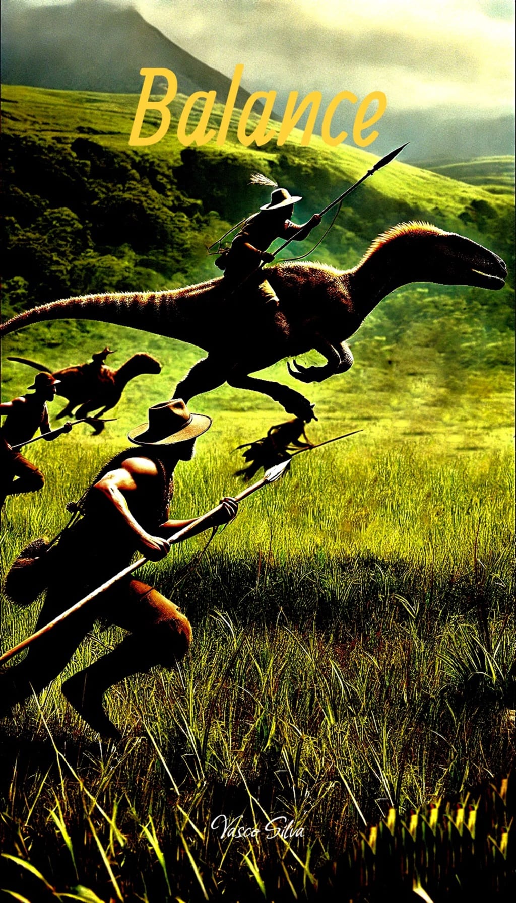 In a dense, primal forest, a pack of Velociraptors sprinted alongside human hunters, their predatory instincts guided by the commands of their human counterparts. The hunt was precise and cooperative, humans wielding spears while the dinosaurs worked to flush out prey. The bond between them was instinctual—trust, unity, and the desire for survival. Together, they brought down massive beasts, securing sustenance for the tribe. Watching from a distance, the Earth Dragon observed the hunt with approval. The wild balance of predator and prey had not been disrupted, but enhanced by this new alliance. It felt the world settling into its natural rhythm and knew its work was nearing completion.