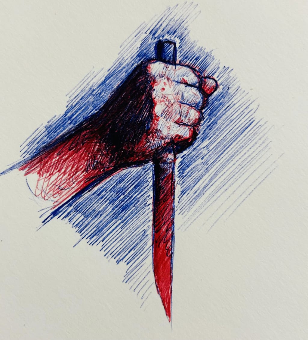 The person in front of Socco—no, the child—stared at him, eyes devoid of emotion. Blood soaked his green and blue cardigan, dripping off the tip of his knife onto the porcelain floor of Socco’s kitchen.