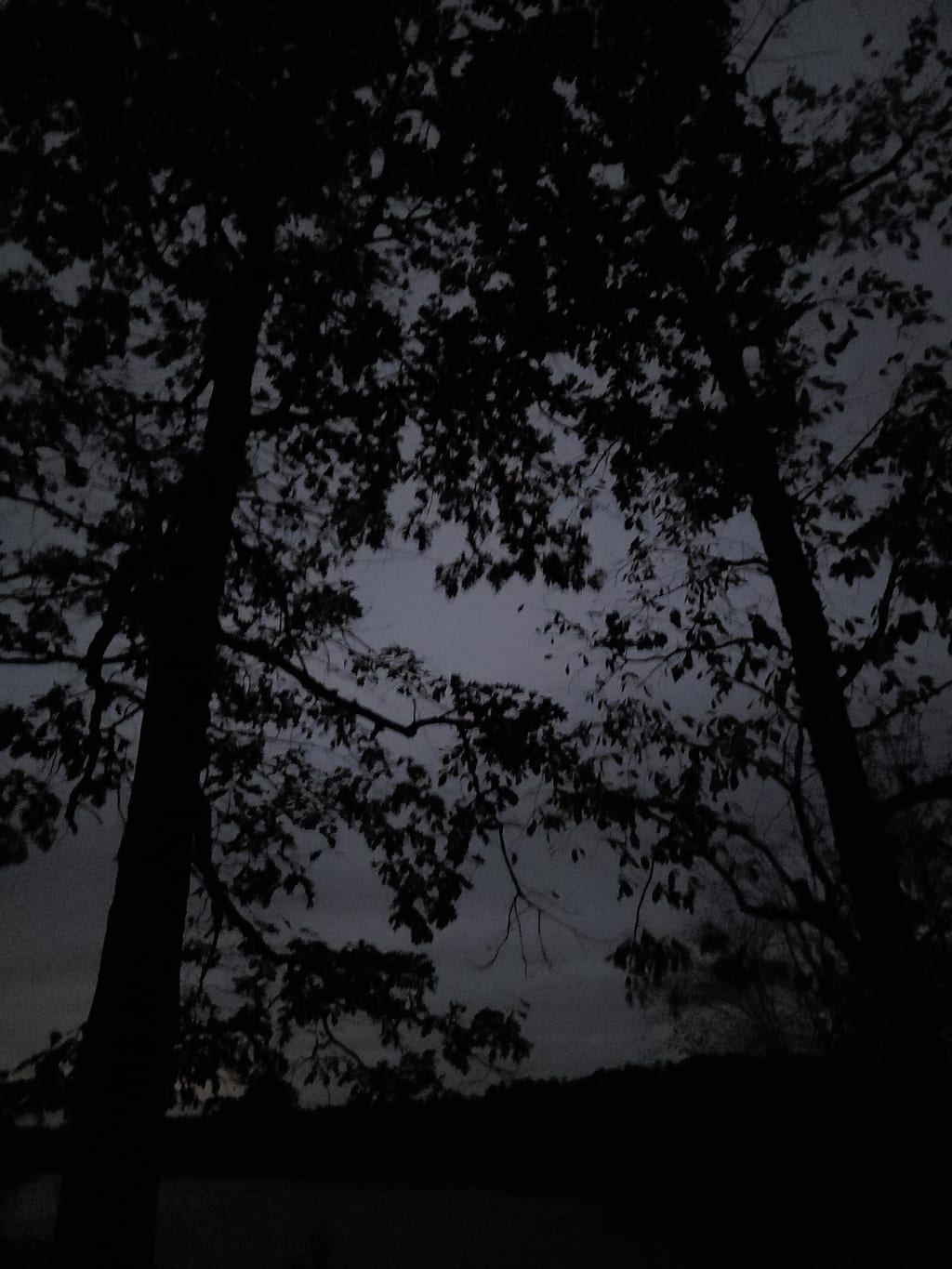 He wanted to speak again to Bones to calm her. To calm himself. But words did not come. He shined his light into the trees. All seemed perfectly serene. Some grass, some trees, some wood, some rocks. Perfectly boring. As he tried to challenge the fear in his stomach, he lifted his foot to step forward. His unnamed feeling surged through him with such ferocity, he placed his foot back down without making a noise. He instead lifted his foot again and stepped backward. Bones took a few steps backward too, not looking away from the trees.