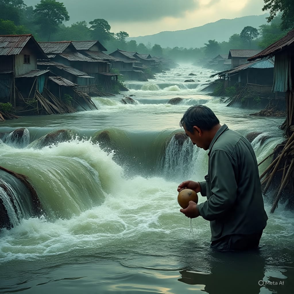 At night, huddled under the temple roof, the villagers spoke in low voices. Some said the river was angry, that the gods had been forgotten too long. Others blamed the new dam upstream, claiming it had burst. No one knew for sure. But everyone knew the truth that hurt most: their homes were gone, and nothing would be the same again.