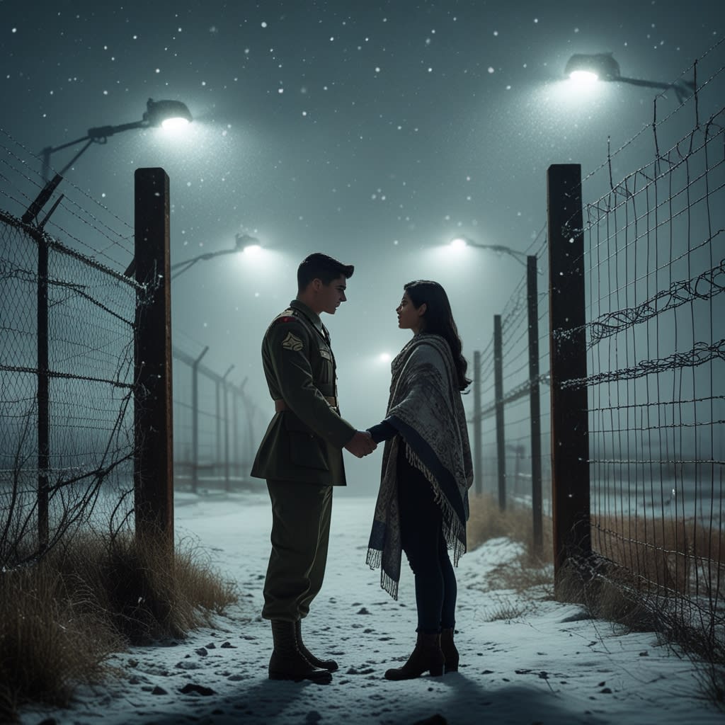 The snow fell silently on the border that night. Between the two nations lay a thin strip of barbed wire and a line of floodlights that sliced through the darkness like watchful eyes. It was not just a boundary of land but of hatred, war, and history — a place no one dared to linger.