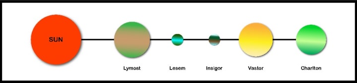 These gas giants reside on the edge of the Porter System. Vastor is medium size, while Charlton is the largest gas giant discovered to date. Charlton has a ring of asteroids and more moons than any other planet. The space surrounding these two planets are home to the shadowy rebel gangs of the Sovereign colonies. They reside on the moons, asteroids and various space stations. The Sovereigns have set up several small mining operations for resources.