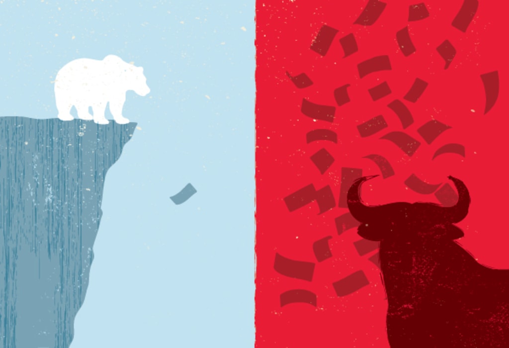 The bulls were at the top. Aggressive and carefree, they tackled every venture with a thrust of their horns. Although lacking in morality, their modus operandi led to their successful reign over the cautious bears and frail humans. They dominated the business world due to their relentless risk-taking. Their ruthless attacks on fellow candidates rendered them unbeatable in politics. Their social circles had no room for humans, and only the slightest for a few bears.