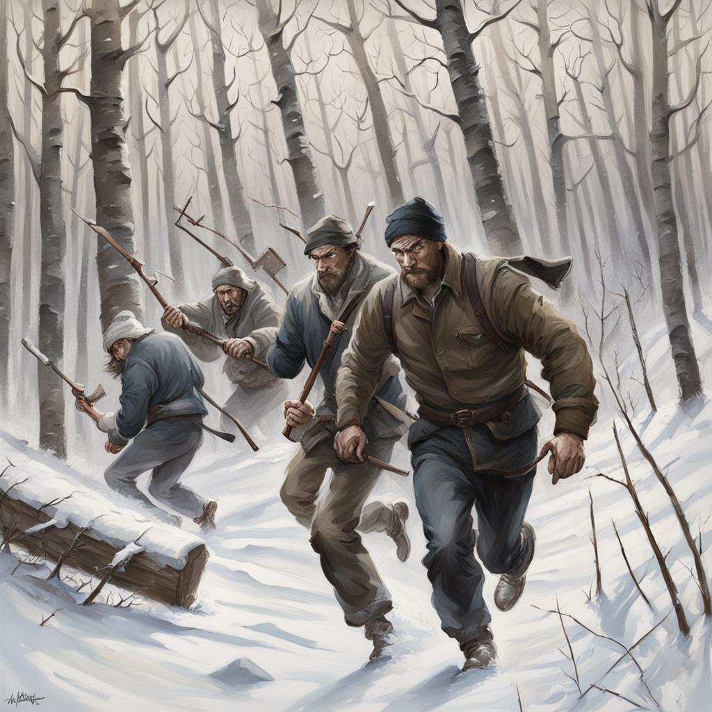 Five of us had left the campsite that morning. The snow had slowed mightily low, down to just light flakes as a miserly sun peeked out from behind the thick overcast sky. Our group had earlier set out to go hunt for hides to trade for food in the government fort. Rolf had begged to be included in the hunt, he was at the age so I agreed for him to tag along. He was kept busy doing chores around the campsite.