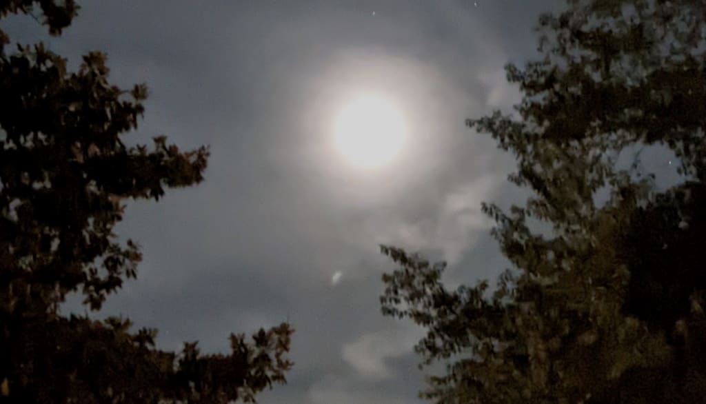 The sound of branches and whole trees snapping from their places filled his ears from all around him. Then Nawgua was shut off from the face of the night in every direction and the stars disappeared. One by one they vanished and Nawgua found himself shut up in a box made of shadow. Even the mountains became silent.