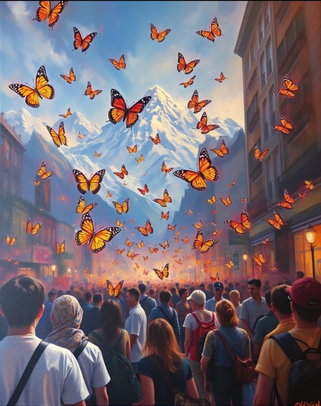 We opted to forgo the inquiries that swirled in our minds in that ephemeral moment. Instead, we surrender ourselves to the enchanting ballet of butterflies, their fragile forms landing softly upon our heads, and those of cherished friends, familiar faces, and even passersby, enveloping the city in their transient beauty. "Remain still," we whispered, longing for this instant to expand infinitely.