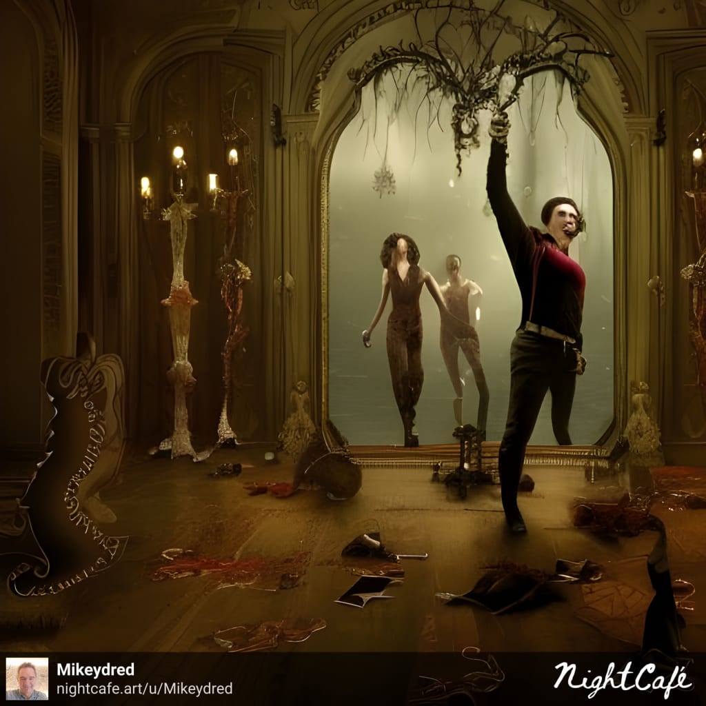 In bed and the magical mirror dominated the room. THEY were sure they could hear someone saying âCome and join usâ but then THEY fell into the arms of Morpheus and were dancing with the spectres in the mirror once more. THEY knew there was something wrong but they were filled with erotic ecstasy and were not going to lose a second of it.