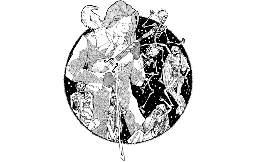 Nicholas shook his head as much as the violin would allow and turned back to the dance. He stepped into the circle as many other gathered lights joined with him. Beyond the pale radiance, he could see another spirit. She wore a long black dress and veil, and he altered his song to call her into the dance, but she shook her head and he realized she was something different altogether.