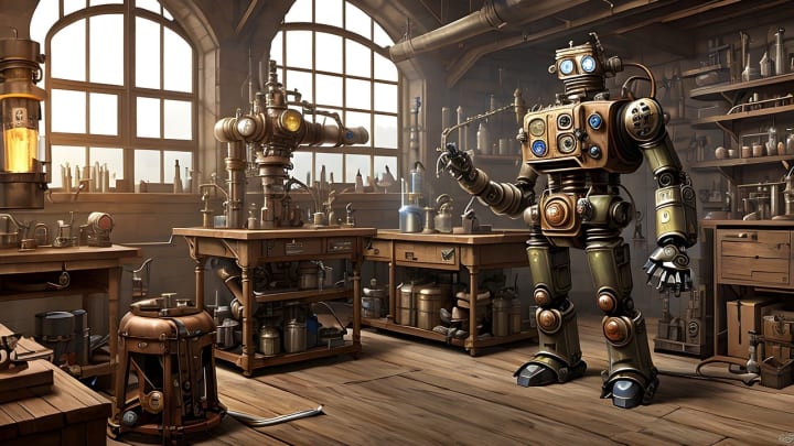 Having got there at last Rivets shuffled off for the stands, chuffing steam out of his smokestacks, cogs revolving busily without producing any great turn of speed. Steady on, Sir, I thought to myself. You've been doing this job for five hundred years. Talk about your tin-plated dictators.