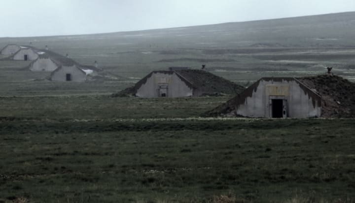 Silence descended on the group once more as they forged ahead, their steps quickening with the end so close. They traversed the maze of crumbling buildings, coming to a halt at a sprawling patch of overgrown grass and unkempt trees framed with crumbling remnants of asphalt. Beyond lay a large single-storey building with smashed in windows staring at them unblinkingly.