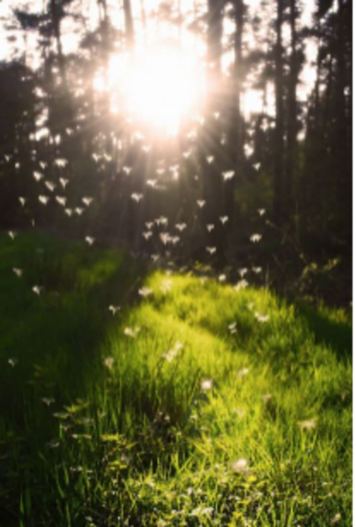 The group, exhausted already, happily collapsed onto the grass under the trees to wait for the all-clear. They were surrounded by a silence that would swallow them whole if they let it.