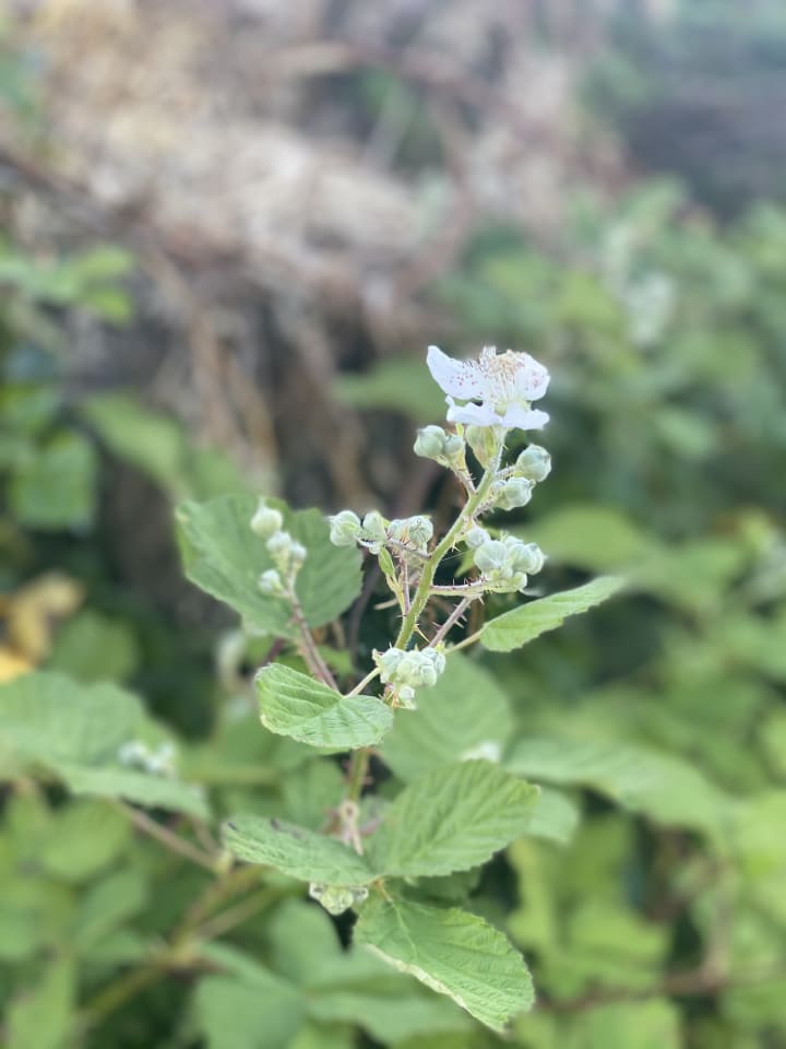 She pulled up to her beach cottage, and white flowered blackberry bushes overnight grown up the side of the house, blocking all the natural light from her picture window.