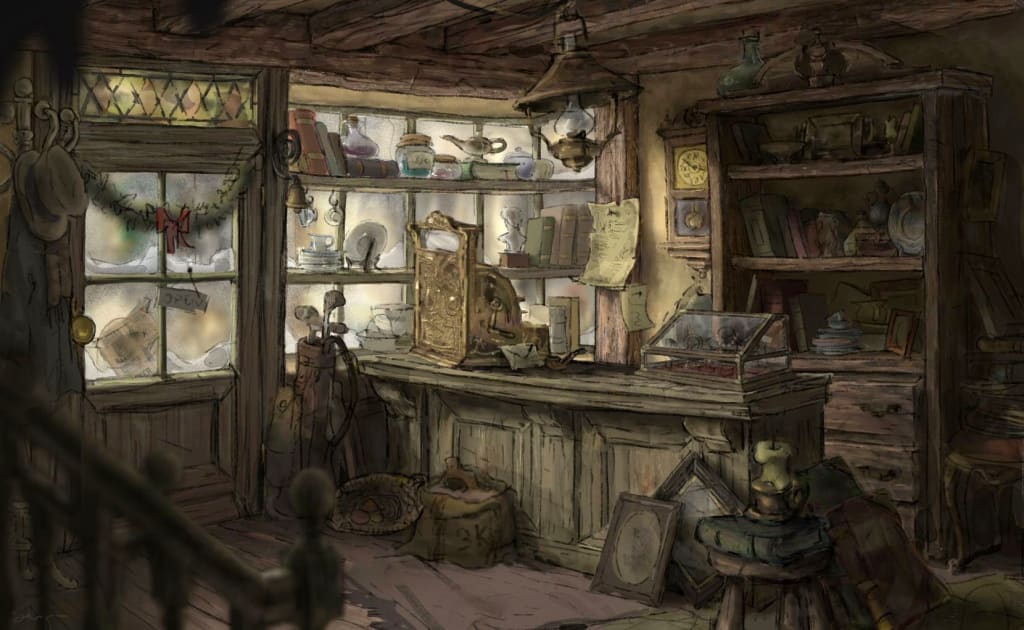 “Come on in, see what I have to offer!” Mars says agreeably from behind the door frame, while preventing the door from swinging back shut with a well polished black boot. He steps aside as three amused parties enter: a pair of well dressed, academy aged young men, an upper class seeming mother and child, and a boney mustachioed man dressed in thespian clothes, remarking on everything he sees.