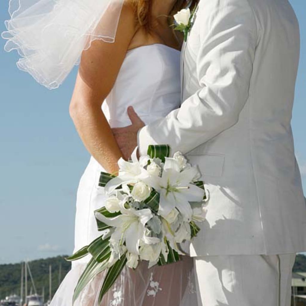 They agreed. They chose to use the pier that led to her father's chartered fishing boat as the aisle; covered it in red carpeting, brought in several different species of flowers and ferns and a few potted palms to dress the dock up. It was intimate, guests threw pink and white rose petals at her feet as she walked to meet him, and blew bubbles as the two strolled down the aisle as man and wife. There were no lions, no circus performers or firecrackers or flames but there was one little person, who was personally hired by me as a photographer.
