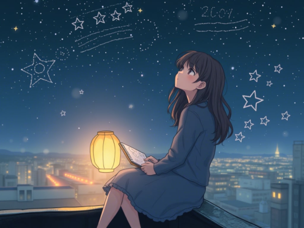 She used to sit on the rooftop of an old bookstore where we met by accident—or maybe fate. I was hiding from the world that day, and she was already there, sketching constellations on the back of a coffee-stained receipt.