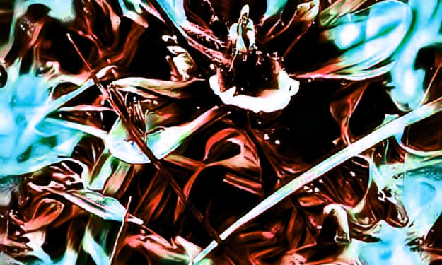 Erin opened her eyes slowly. She looked at her arm stretched out in front of her. Black sand. She ran it through her fingers, noticing that her hand was no longer cut. She stood and looked into the ocean water. She went over to it and cupped her hands in it. She repulsed in terror, it was blood red and thick. She backed away from the waters edge quickly, and then remembering the man in the woods, she spun around quickly. He was standing in the trees. Adrenaline rushed through Erin's veins, and before she could think about what she was doing, she ran at him.