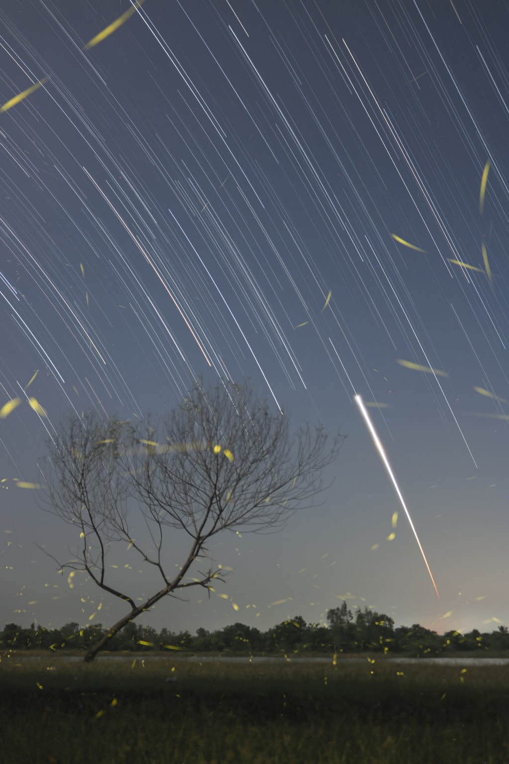 As soon as the sun set behind the trees, the fireflies began to emerge. They twinkled and danced through the air, their soft glow illuminating the warm summer evening.