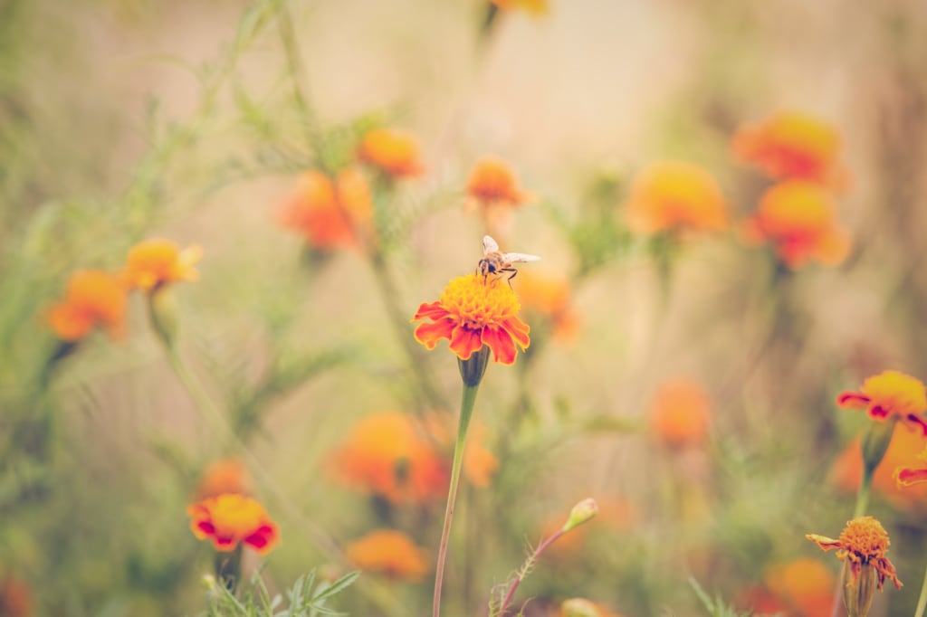 It was early but already the sun was hot and high in the sky. Giorgio rubbed his eyes and yawned to clear his ears. A humming seemed to resonate in the earth beneath his feet. His mind finally grasped what it was - bees, hundreds of them. Thousands of them. They danced among the marigolds and crocuses, swirling around the little apple tree. Oh, the sound of it. Giorgio had never heard such happy bees. He did not know whether the marigolds had brough the bees or the bees had made the marigolds. What did it matter?