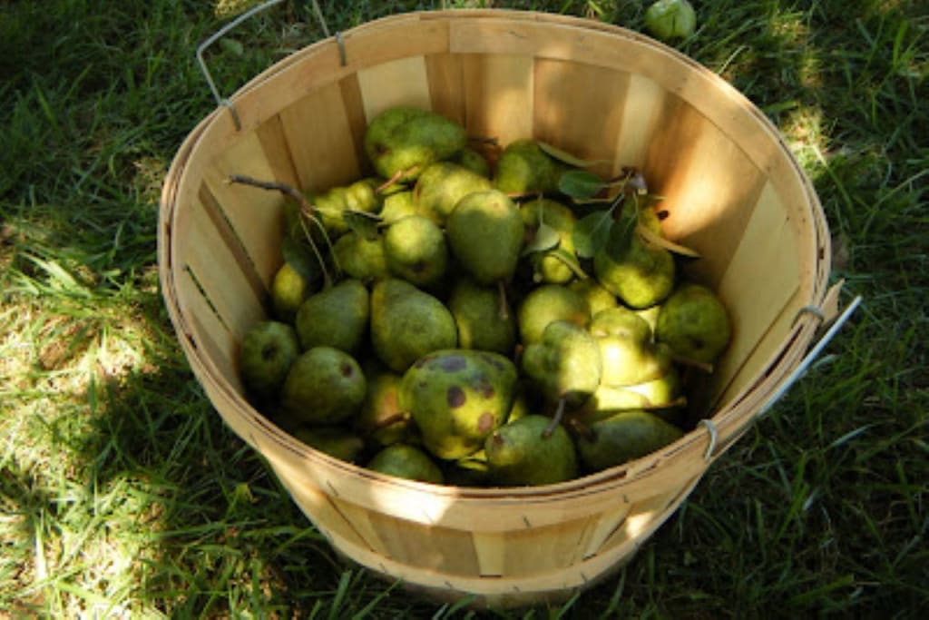 A few minutes later, as the sun descends towards the horizon, the pickers emerge from the orchard, carrying ladders and overflowing bushel baskets. Mrs. Kerr gathers up the dishes and puts them back into her basket. “We will all miss your momma, dear. I hope that whoever buys this place will do right by her.”