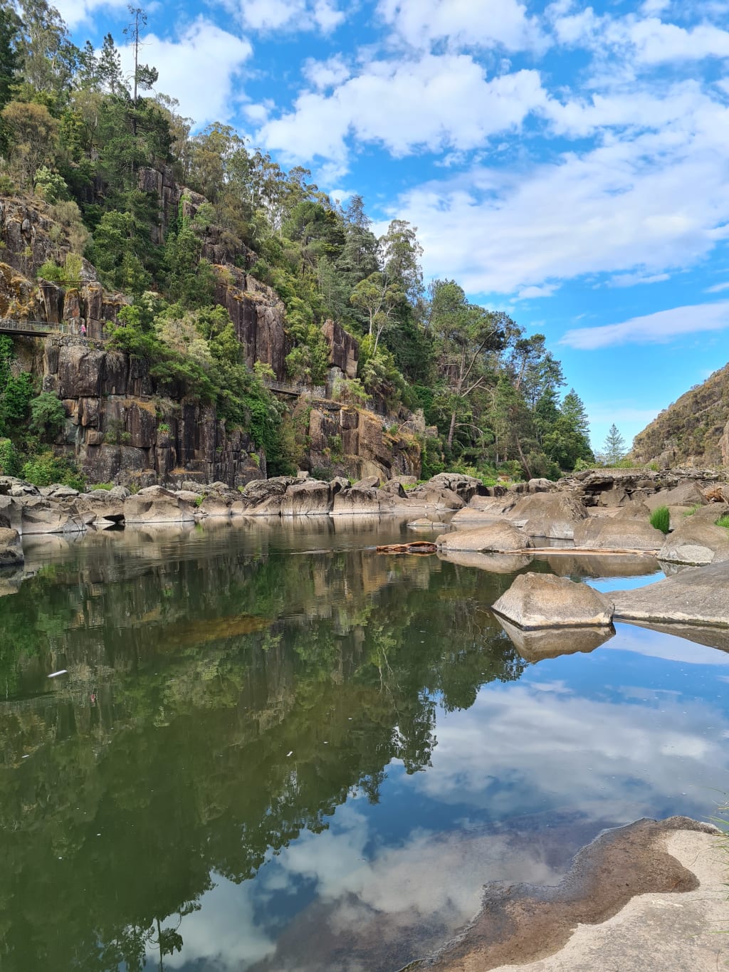 The First Basin, a natural waterhole one hundred and fifty metres wide and supposedly bottomless, was teeming with swimmers. They emerged from the scrub around the water’s edge, or from under the high swinging bridge on the Western side, or from the boulders lining the strip of lawn between the river and the pool. Laughter and splashed screams drifted through the summer heat.