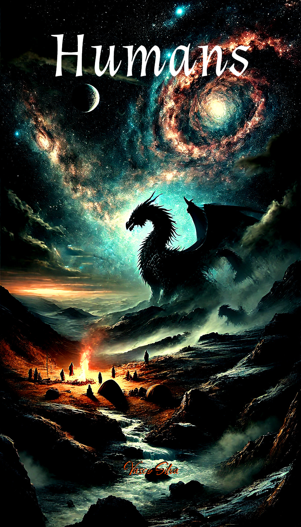 The night sky shimmered with stars as a small tribe gathered around a fire, their faces illuminated by its warm glow. They had learned to live in balance with the world, guided by the dragons’ subtle hand. Above them, unseen but ever watchful, the dragons circled the Earth, their vast forms hidden in the elements.