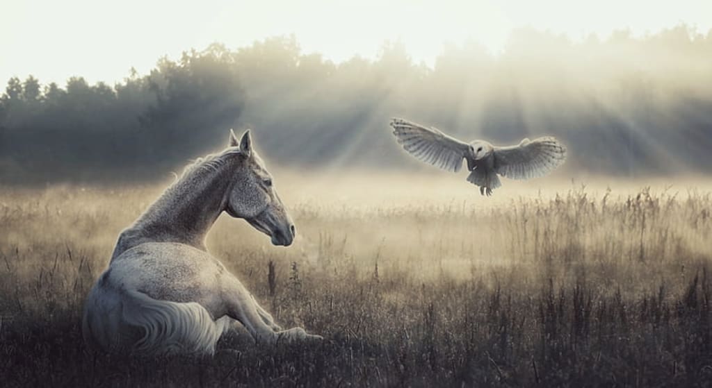 Jean was already making mental arrangements for the upcoming Polo season. She knew she was going to need a new set of guards. If only she could remember what she did with her right knee guard. "Of all the things to lose, a bloody knee guard, geesh!" Mary-Bell mocked. "They were scratching us both and you know it! A new pair of guards never hurt anyone." Scoffed the horse. The sun had just started to peak over the hills to the east. The smell of dirt and dew began to fill the air as the ground began to warm and wake from the crispness of the night. Most of the players had started showing up. Jean had the feeling that today was gonna be different. She just knew it. It wasn't long before the players began to make their way about the grounds in preparation for what should have been a fantastic start to the new season of Polo. Jean mounted Mary-Bell and in no time made their way front and center. From the west with the speed of light came an image from the side of Jeans' head that she will never forget. White and tan wings with a set of massive eyes swooped down towards Jean and Mary-Bell. Jean instantly was reminded of the scene from one of her favorite childhood movies; Labyrinth. The scene where David Bowie in the guise of a gorgeous Barn Owl flies into Sarah's baby brother's room, throws open the french doors and swiftly becomes Jerad the Goblin King. With the same power and thrust to which the owl/ Goblin King/ David Bowie throws open Sarah's french doors, Mary-Bell reared up high on her hind legs. The horse throws Jean high and far. Coming down with what could only be described as a loud crunching sound, Jean screamed, as one does after having the wind knocked out of them. Almost an inward scream. Followed by another deep breath that never seems enough. The horse was obviously traumatized and more so; very embarrassed. "Jean" gasped Mary-Bell, followed by everyone else within earshot. At both the site of a fragile-looking young woman flying high off her high horse and the sound of her very own horse clearly naying her name. It was clear this day was, indeed; special. Not the good kind of special, everyone hopes for. The embarrassment type special, that keeps folks up at night wishing it didn't happen.