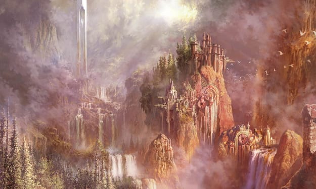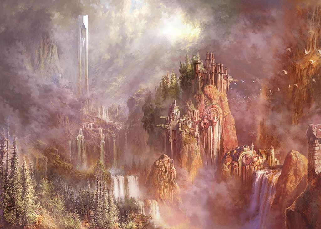 Inside was a large room filled with light. He walked in shielding his eyes from the blinding light. When his eyes adjusted he could see an expanse of mountains though several large columns. It was the most beautiful scene he had ever seen. He walked closer to the opening and could tell that the room was carved into the side of a mountain as the walls were rough rock. Even though the walls were rough the floors were a shimmering, marblesque material. A small table and a chair lay beyond a small bridge over an opening in the ground. When he came to the bridge he noticed that under it ran water, soundless for some reason. Suddenly realizing he was parched, he reached down to get a drink. As his hand came close to the water there was a shimmer as his hand passed through a barrier. The water was cool to the touch. He saw the grime wash away from his hand, putting the sword down, he put both hands in and washed the dirt and grime off his hands. Only pulling them up to quench his thirst. The water was clean and chilled. It felt good as he drank it, washing away his exhaustion with every gulp. When he finished he noticed a door by where the water passed under the wall. He got up, picking up his sword and walked over to it. This door didn’t shock him as he opened it. Inside was something he could never have imagined. The water lifted up into the air and showered back down again though unknown means. The air became warm and humid as he walked into the room. A pair of clothes hung next to the door, he immediately stripped down and ran into the falling water. It was the perfect temperature, not too hot but not too cold either. He gratefully washed himself off and stepped out from the water. The air became warm and by the time he walked over to the clothing hanging by the door he was dry. He reached out and grabbed the clothes, they were softer than any clothing he had ever felt. He put them on and they were nearly a perfect fit. The outfit outdated, as if it was from medieval times but he never felt more comfortable.